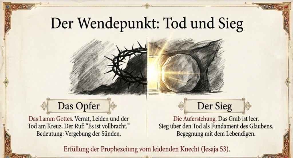 Hier kulminiert alles: Jesus, das Lamm, ist der Weg, weil er durch Opfer siegt. Die Szene ist pure Anbetung, die uns lehrt, dass alle Geschichte auf Christus zielt.